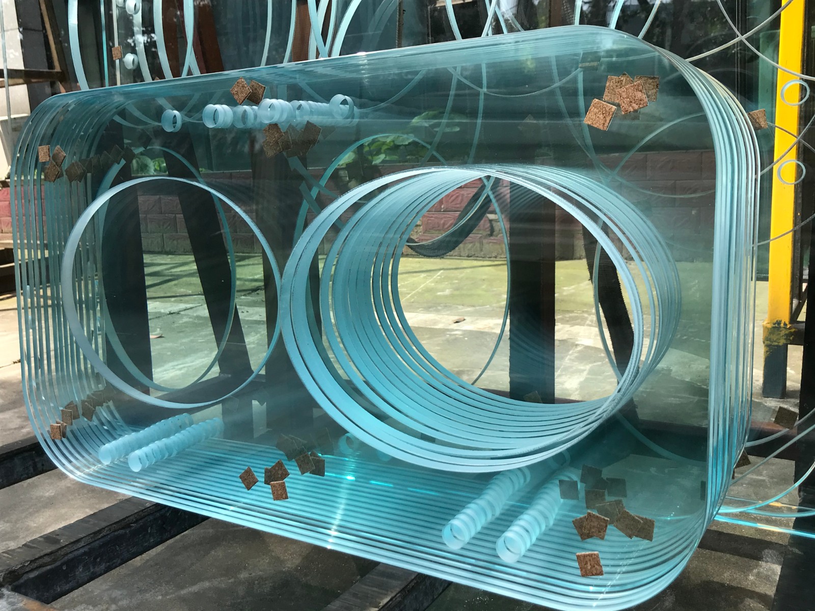 二、長沙工藝玻璃采用熱熔法進(jìn)行加工。玻璃熱熔模具用砂模貨硅酸鋁纖維紙與板。常用的為砂模,將純凈的石英在爐膛內(nèi)鋪平,砂層厚約1.5cm,然后按設(shè)計的圖按用竹桿作畫,細(xì)節(jié)部分可用木筷描繪,于是就在石英砂上形成凹形的圖案作為陰模,再在上面撒上脫模粉,然后將平板玻璃平放在石英砂紙成的陰模上,當(dāng)玻璃加熱到軟化點以上,即因自重沉到砂模中成形。